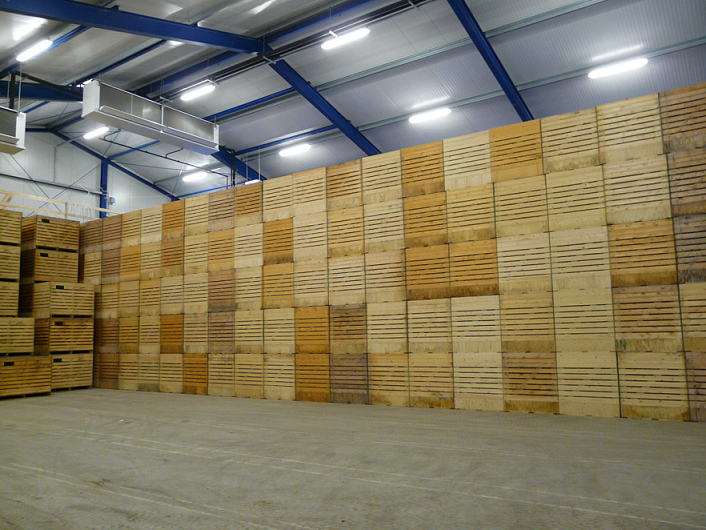 目前宽度为2.5米的木箱正在被越来越多的采用。使用负压通风系统,可以确保新鲜空气水平的流经整个木箱。